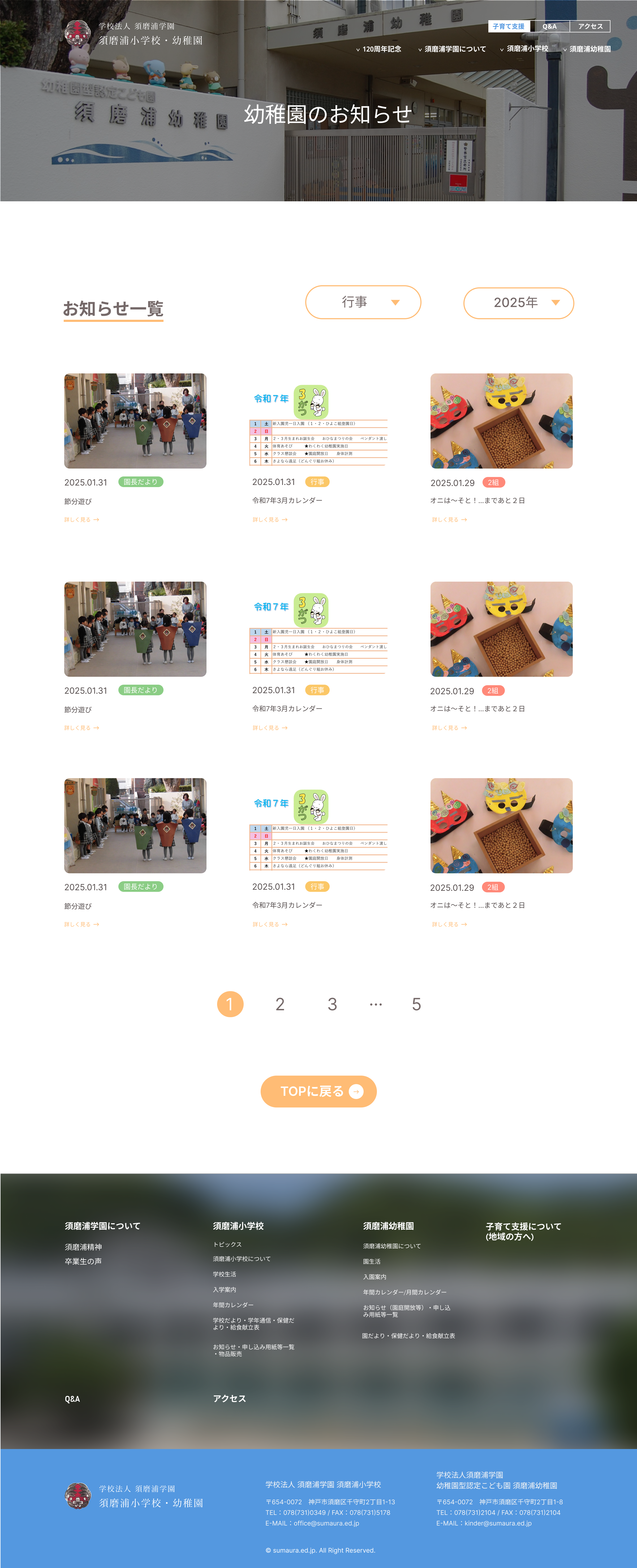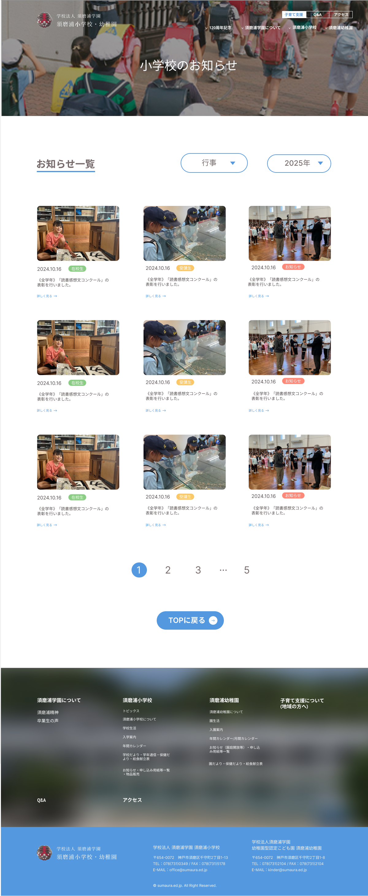 また、下層ページの「お知らせ」では更新頻度や学校の活動の様子を一目で伝え、学校の雰囲気や活発さを感じてもらえるように工夫しました。